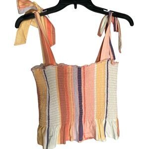 New with Tags, BAR III Striped Cotton Smocked Peplum Tie-Strap, Color is called Sherbet Stripe My, Size Medium, Retailed $59.50.