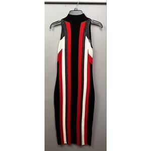 Bar III Striped Mock Neck Bodycon Party Dress Womens Small Black Red Stretch NEW