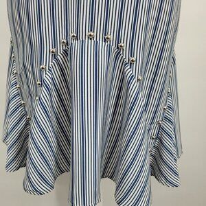 Blue White Short-Sleeve Striped Flounce-Hem Studded Dress