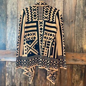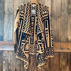 Bar III Sz XS NWT Tan Black AzTec Open Long Warm Cardigan