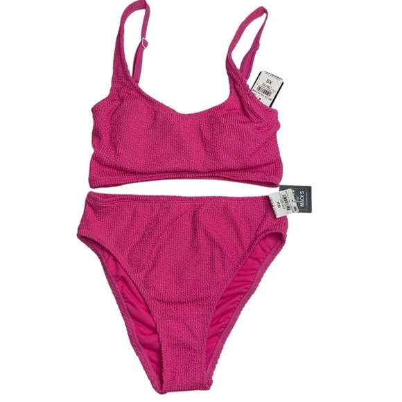 Bar III Tank Bra Bikini Top & High Leg Bottoms Candy Kiss Pink Textured XS New