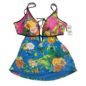 Bar III Tankini & Bikini Tops & Shirred Side Hipster Bottoms Summer Spritz Large