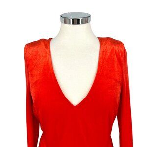 Bar III Velvet Red Long Sleeve V-Neck Dress Size Large NWT