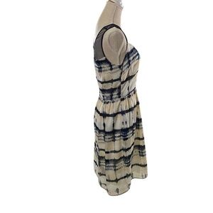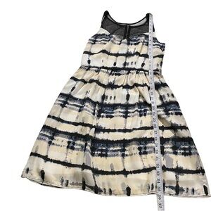 Bar III Women Cream Blue Abstract At Knee A-Line Dress Sz M Mesh Neck Sleeveless