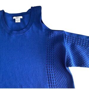 Bar III Womens Cold Shoulder Knit Sweater M Blue Viscose & Nylon
