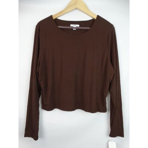 Bar III Women's Crop Top Plus Size 2X Brown Bodycon Long Sleeve Cropped Shirt