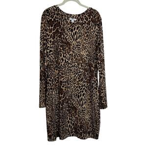 Bar III Womens Dress XL Leopard Print Long Sleeve Brown Tan Animal Print