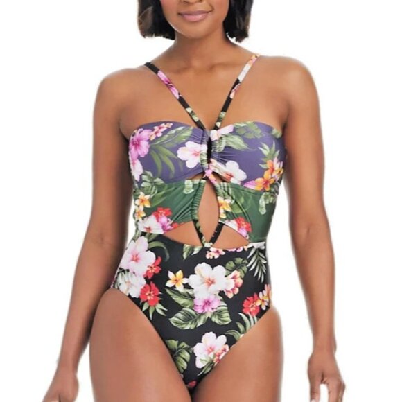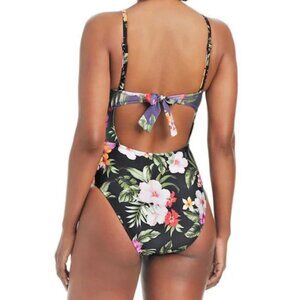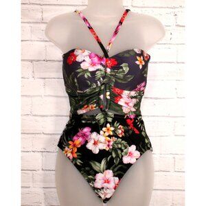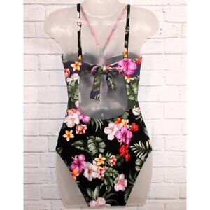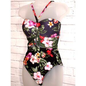 Bar III Women's Floral Keyhole One-Piece Swimsuit Navy Blue Size Large NWT