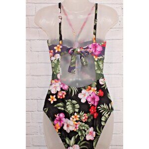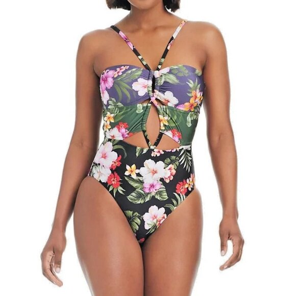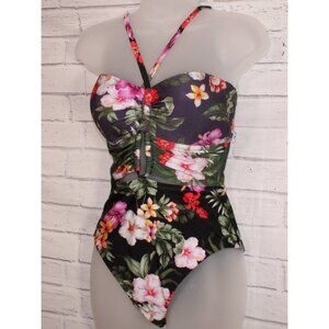 Bar III Women's Floral Keyhole One-Piece Swimsuit Navy Blue Size Medium NWT