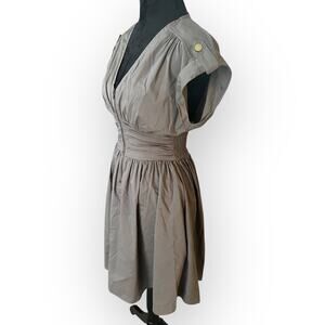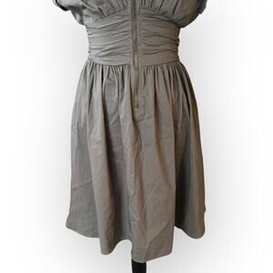 Bar III Women's Gray V-Neck Cinched Waist Zip Front A-Line Dress Size Small