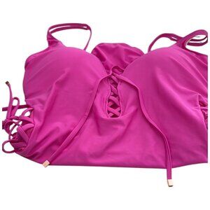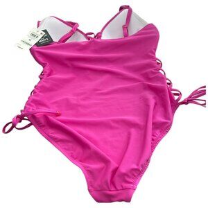 Own your bold side in this Bar III Lace-Up One-Piece Swimsuit in Magic Magenta—brand new with tags! Designed for those who swim in confidence, the stunning lace-up detailing adds sultry style to this poolside must-have.