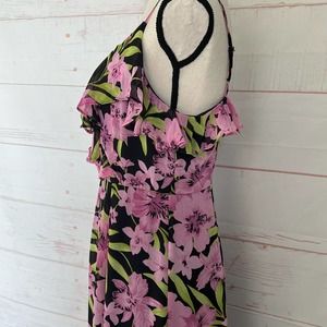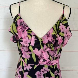 Bar III Women's Maxi Dress Size Small Pink Floral Sleeveless Ruffles Flowy