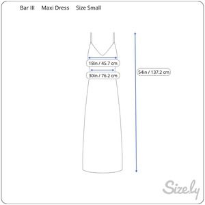 Spaghetti adjustable straps, fully lined, Front slit, Back zipper for closure, Shell & Lining 100% Polyester, Machine Washable, Made in Indonesia, Pre-owned but very good condition, No signs of visible flaws, see all pics and measurements for more details of the item, MEASUREMENTS ARE ON THE LAST PICTURE