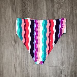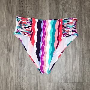 Bar III Women's Multi Color Waves Strappy High-Waist Bikini Swim Bottoms sz S