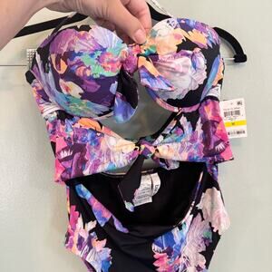 Bar III Women’s Multicolor Tie-Front High Leg One-Piece Swimsuit Size Medium
