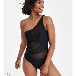 Bar III Women's One-Shoulder Mesh Cutout Swimsuit