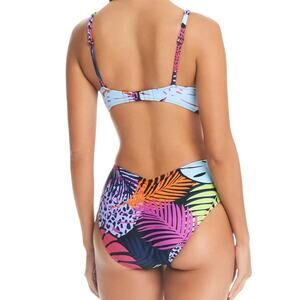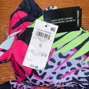 Women’s Palm Prowl Cross Front Monokini One Piece Swimsuit from Bar III. Meet your new go to for long days by the pool with this tropical print monokini. Plunge neckline. Lined. Criss cross detail at front. Full bottom coverage. Clasp closure at back. Adjustable over the shoulder straps. Fixed molded push-up cups.