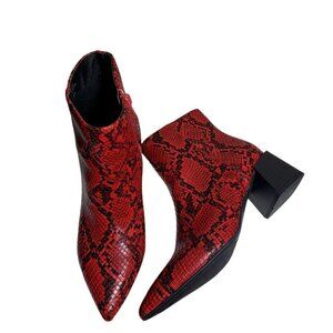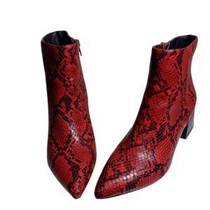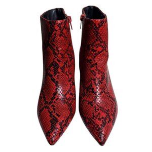 Bar III Womens Red Snake Print Pointed Toe Slip On Zip Block Heel Bootie Size 6M