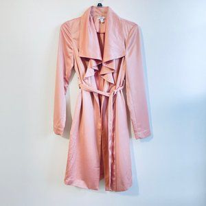 Bar III Women's Ruffle Drape Front Silky Jacket With Belt Pink Extra Small New