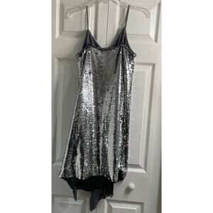 Bar III Women's Silver Metallic Sequined Slip Dress with Ruffle Size Medium