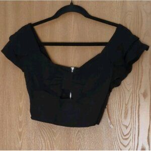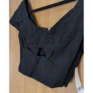 Bar III Womens Size 0 Black Ruffle Sleeve Keyhole Crop Top New With Tags