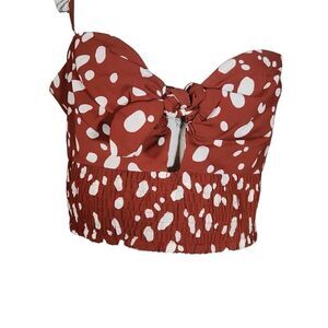 Bar III Women's Size Large Orange Rust White Carmen Dot Tie Front Cami Crop Top