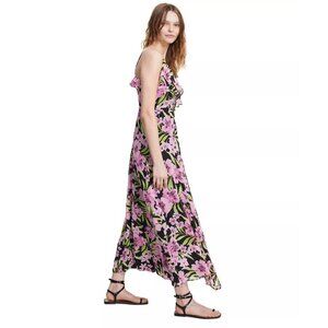 Bar III Womens Size Small Floral-Print Ruffled Maxi Dress in Havana Pink/Black