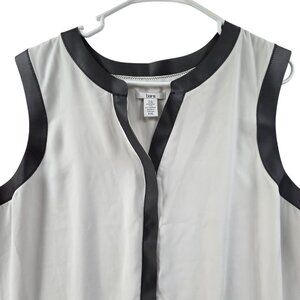 Bar III Women's Sleeveless Overlay Faux-Leather-Trim Top in white Size XXL