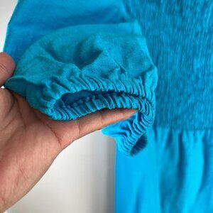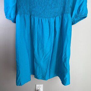 Bar III Womens Smocked Off-The-Shoulder Mini Puff Sleeve Dress XL Blue