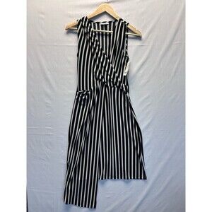 Bar III Womens Striped Wrap Asymmetrical Dress Black White XS NWT
