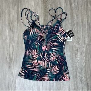 Bar III Women's V-Neck Strappy Woven Cross Back Bali Nights Tankini Swim Top