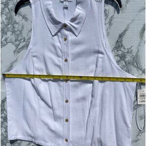 Bar III Womens White Sleeveless Button-Down Collared Top Size L Lightweight