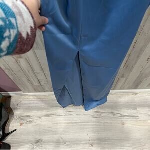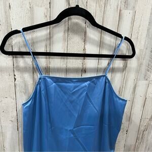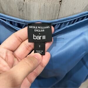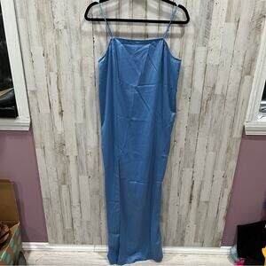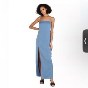 Bar III X Nicole Williams English Blue Satin Maxi Dress Side Slit