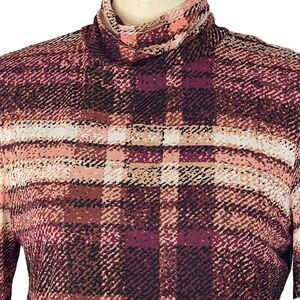 Bar III X-Small Top Plaid Long Sleeve Turtleneck Stretch Lined Lightweight Multi