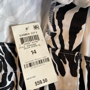 NEW Bar III zebra print high waisted mini skirt featuring gathered Paperbag waist style. Lightweight stretch denim. Front pockets. Zip fly with hook closure.