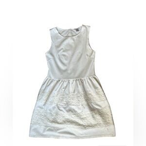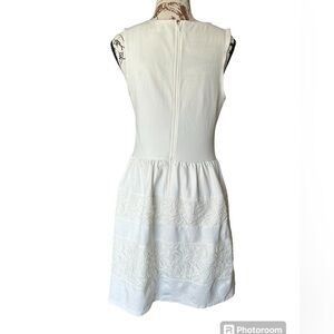 Bar III summer midi ivory colored sleeveless dress. Fitted bodice with pleated skirt. Above or at knee length. Horizontal lace panels around skirt. Soft and feminine.
