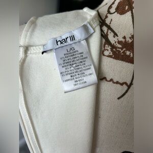 Flaws: last photos show loose thread on the neckline and around left armhole. Small stain at the very bottom of the front hemline. All of this is only noticeable under close inspection.