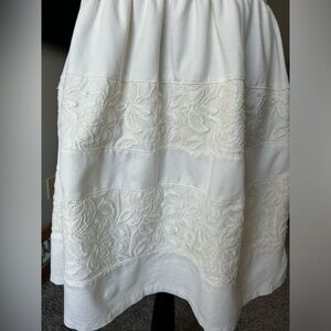 Bar III summer midi ivory colored sleeveless dress. Fitted bodice with pleated skirt. Above or at knee length. Horizontal lace panels around skirt. Soft and feminine.