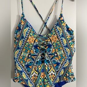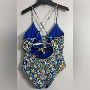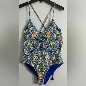 Bar III lace Up One Piece X Back Swimsuit Bathing Suit Swimwear Sz Large
