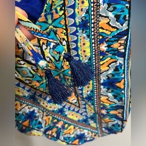 Crisscross back with adjustable straps to tie with fringe endings for boho look.