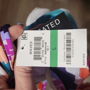 Bar III sz large striped one piece plunge cutout swimsuit new with tags SW2