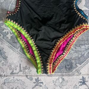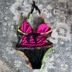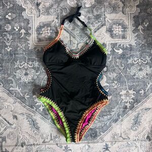 Bar III Black Multicolor Stitched Be Weave It Cutout Swimsuit Bikini
