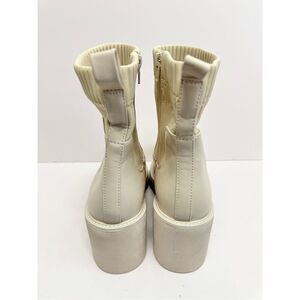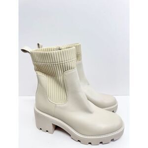 Bar III Boots Cream Chunky Heel Size 10 Womens Ribbed Ankle Booties Side Zip