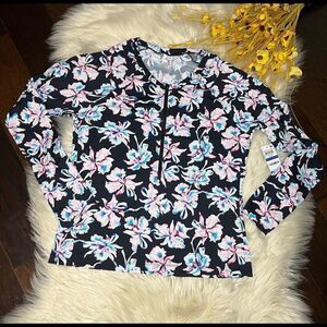 Bar III floral black/purple/pink/turquoise 3/4 zip Longsleeved pullover Sz XL measurements in photos NWT