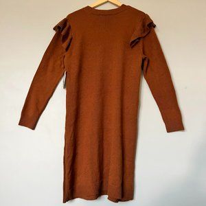 Bar Iii Dresses Womens Brown Ruffled Cable-knit Front Long Sleeve Crew Neck #20
