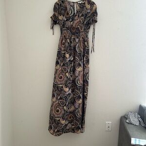Smocked at waist; side slit Ankle-length or longer casual dress