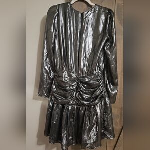 Bar Ill Women's Metallic Lamé Blouson Mini Dress silver. Size small