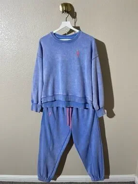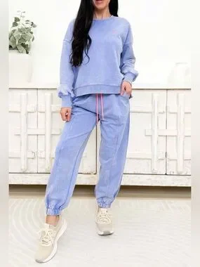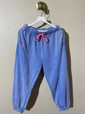 Comfortable lavender jogger pants with a soft feel. Elastic ankle cuffs and a pink drawstring for an adjustable fit. Casual style perfect for everyday wear and easy to pair with tees or sweatshirts.