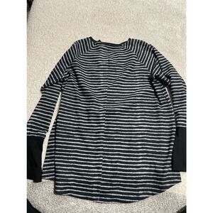 Bar by Melis Kozan Women's Size Medium Striped Side Zip Pullover Long Sleeve Sweatshirt Black