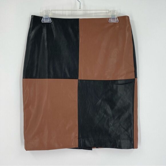 Bar iii Women’s Square Color Block Black and Brown Faux Leather Pencil Skirt 6